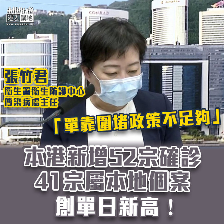 【疫情嚴峻】本港新增52宗確診、41宗屬本地個案張竹君:單靠圍堵政策不足夠 - 港人講地
