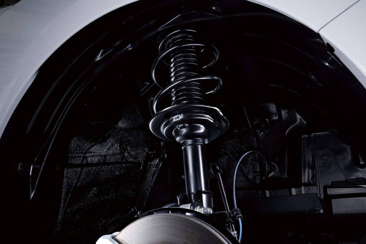 専用装備として、STIチューニングのショーワ製SFRDフロントダンパーと、同じくSTIチューニングのリヤダンパーを採用。素性の良い、インプレッサの走りをさらにレベルアップ。