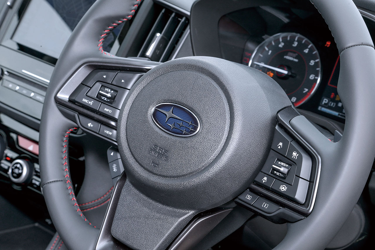 ■主要諸元(STIスポーツ・FF) ●全長×全幅×全高:4475×1775×1480(ルーフアンテナを含む。ルーフ高は1455)mm ●ホイールベース:2670mm ●車両重量:1350kg ●駆動方式:FF ●パワートレーン:2.0L水平4DOHC(154PS/20.0kg・m) ●トランスミッション:CVT(リニアトロニック)●WLTCモード燃費:13.0km/L ●最小回転半径:5.3m ●タイヤサイズ:225/40R18 ■主要専用装備(STIスポーツ・FF) フロントグリル(ブラック塗装加飾)/フロントフォグランプカバー(カーボン調+ブラック塗装加飾)/ルーフスポイラー(ブラック塗装)/18インチアルミホイール(ダークメタリック塗装)/STIチューニング SHOWA製SFRDフロントダンパー/STIチューニング リヤダンパー/専用シート/本革巻ステアリングホイール(ブラックラスト塗装ベゼル+レッドステッチ+高触感革)/ブラックラスト塗装加飾付き本革巻シフトレバー/ピアノブラック調シフトパネル(ブラックラスト塗装加飾)/レッドメーター(メッキリング付き、STIロゴ入り)/インパネ加飾パネル(ブラックラスト塗装)