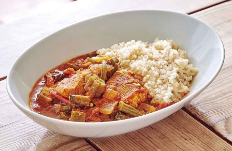 ターメリックを使った代表的な食事と言えばカレー。そこでターメリックや健康効果のあるスパイスをふんだんに使い、さらにホウレン草やトマトなど抗酸化力の高い食材も取り入れた「最強のカレー」(スパイス料理研究家の渡辺玲氏監修)を開発した。ポリフェノールを多く含む玄米を、白米の代わりに使うのもポイント。その風味に合う爽やかで辛い味わいに仕上げた。